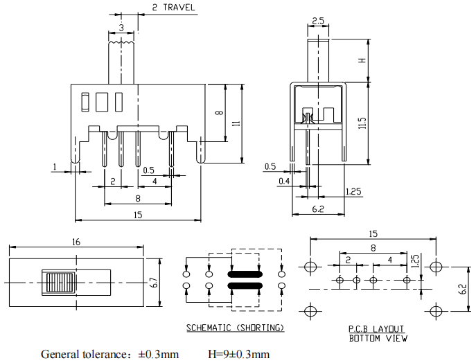 No IP Ratingمفاتيح انزلاقية ذات عمود واحد ودبوس ثلاثي المواضع