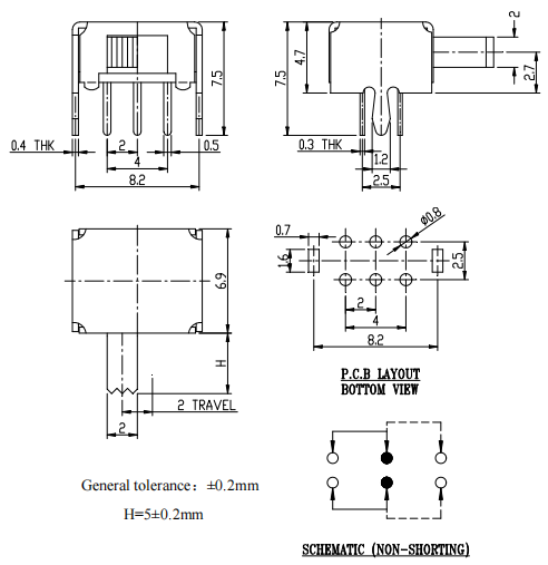 No IP Ratingمفتاح منزلق صغير بمقبض متنوع لتركيب لوحة الدوائر المطبوعة