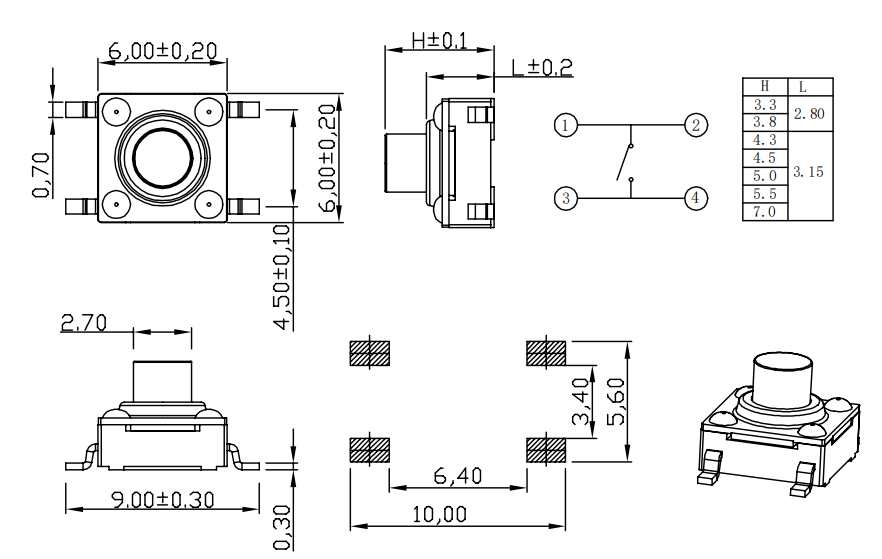 مضغوط ودقيق (6×6 مم) - تصميم موفر للمساحة يتناسب بسلاسة مع التخطيطات الضيقة مع الحفاظ على الشعور اللمسي المستجيب لإدخال المستخدم بدقة.
