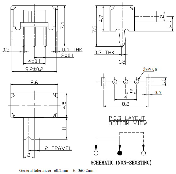 No IP Ratingمفتاح تبديل مشغل منزلق مرتفع 3 مم للدائرة الإلكترونية