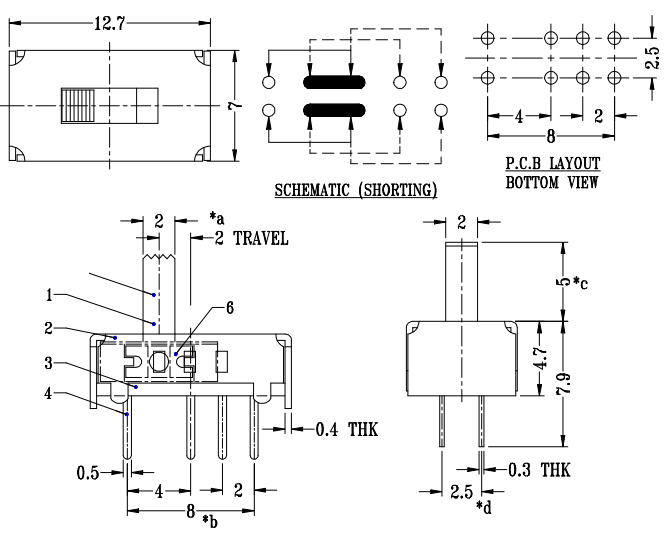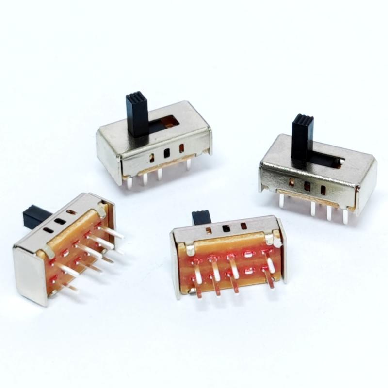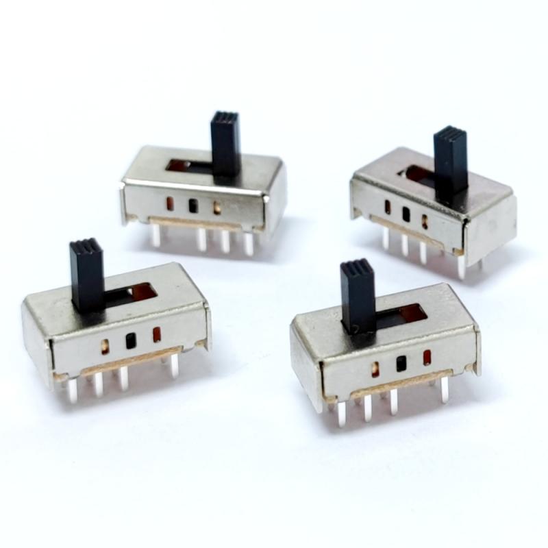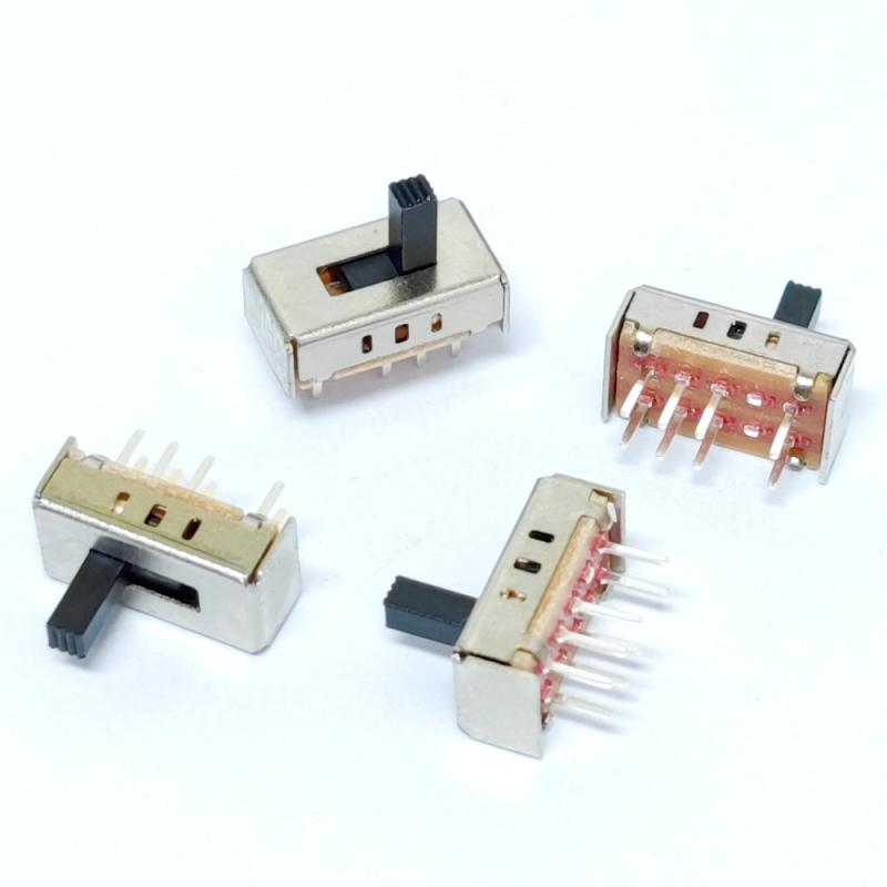 مفتاح الشريحة 2P3T هو مفتاح تحكم ثنائي القطب بثلاثة اتجاهات (2Pole 3Throw) يتيح التبديل في ثلاث حالات لدائرتين مستقلتين (على سبيل المثال، اختيار التشغيل/الإيقاف/الوضع) عبر عملية اهتزاز، وهو مثالي للسيناريوهات المعقدة التي تتطلب التحكم المتزامن متعدد الدوائر.